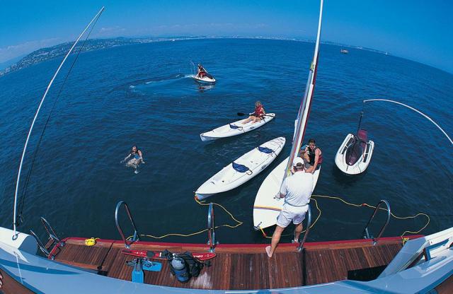 Снаряжение для спорта и отдыха на воде : 7m (23') RIB with 240 Hp Volvo duo prop diesel 6m (19') RIB jet tender with 230 Hp Yanmar diesel 2 x 2 seater waverunner 2 x 2 seater kayaks 1 x competition water ski Water skis Wakeboard 2 x donuts 1 x banana (6 person) 1 x inflatable trampoline 2 x moun