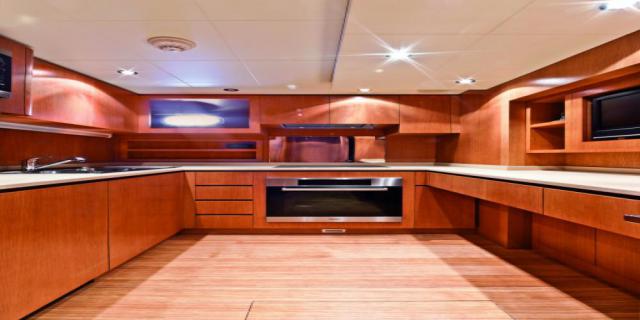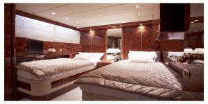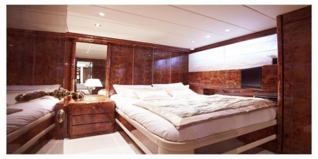 Наличие ASD позволяет максимальнорационально использовать пространство яхты и ее динамические свойства: два двигателя по 2400 л. с. каждый — и 25-метровая махина разгоняется до 45 узлов. Хотите еще больше драйва — встаньте за штурвал Mangusta 80. Инженеры позаботились об отличном обзоре, информативном руле и удобных креслах. На максималке автономность хода Mangusta 80 составляет всего около 250 миль, но этого вполне достаточно, чтобы, позавтракав в Каннах, пообедать на Корсике, а на вечерний коктейль успеть в Геную или Сен-Тропе. Главная палуба Mangusta 80 — это уютные респектабельные салон и кокпит, а также солярий на носу лодки. Жилая палуба может быть выполнена в двух вариантах: с маленькой каютой для команды в носу лодки или с «настоящим» crew-mess, выделенным в отдельный отсек с камбузом и другими бытовыми помещениями.