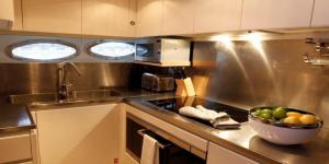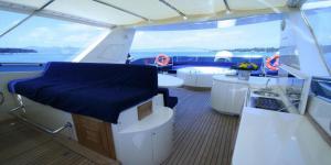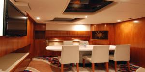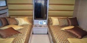 Conam 75 - это роскошная, очень просторная яхта, способная разместить у себя на борту 12 гостей. Интерьер Conam 75 такой же просторный, как у яхт в 28-30 метров. Это пространство обеспечено широким корпусом данной модели. Судно оборудовано 4 каютами: 2 каюты с двуспальными кроватями и 2 с двумя односпальными кроватями. Каждая из кают имеют свой сан-узел и ванную комнату. На главной палубе достаточно места, где располагается бар и столовая, которая с лёгкостью превращается в банкетный зал под открытым небом. На верхней палубе находится флайбридж. В носовой части место для отдыха и загара. На задней палубе находится столовая. Также на борту есть гараж для тендера и водных лыж, водного мотоцикла и другой экипировки для отдыха на воде.