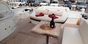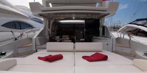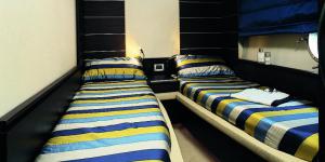 Яхта расчитана на 12 человек, при чартерном выходе на 1 день (11 гостей и 1 капитан). В распоряжении гостей 4 каюты, салон и 3 туалетных комнаты, 2 главные каюты со своей ванной и туалетом. Все каюты с системой кондиционирования воздуха / отопления. Полностью оборудованная кухня с микроволновой печью, духовкой и грилем, ТВ & DVD, CD / радио. Яхта полностью оборудована для комфортного чартера. На купальной платформе размещена тендерная лодка с подвесным двигателем. Имеются надувной круг (ватрушка) и снаряжение для снорклинга, Джетски Yamaha GRP 800
