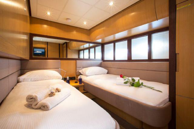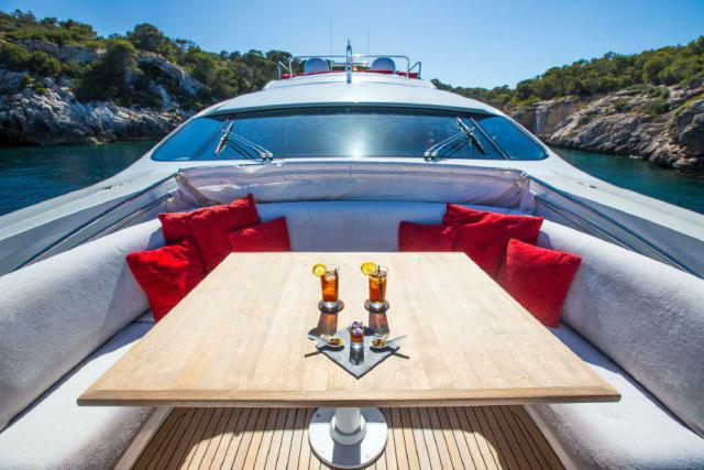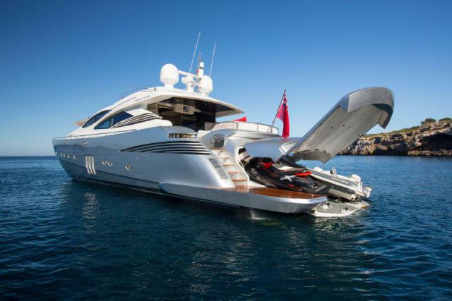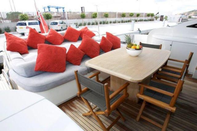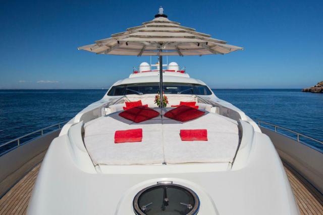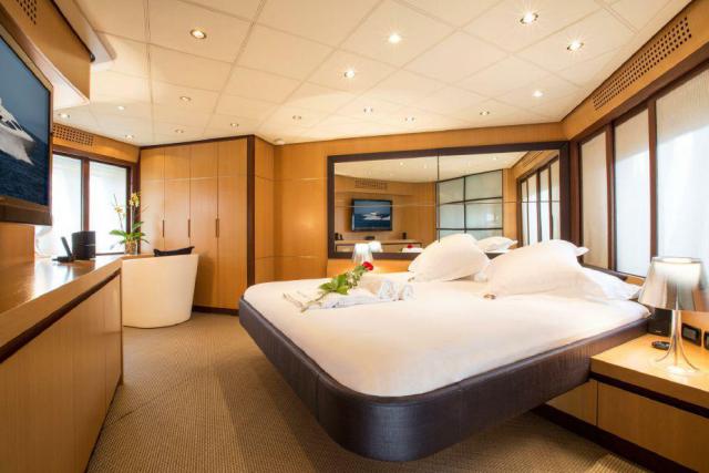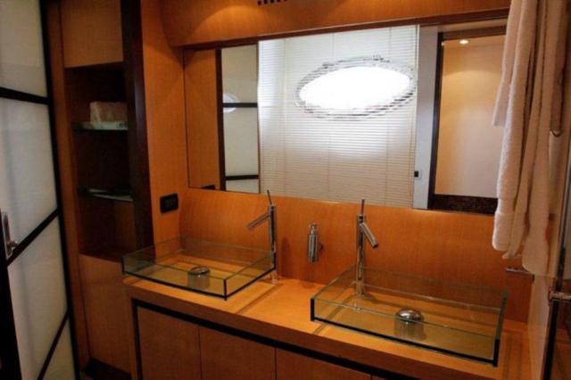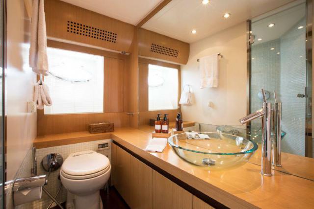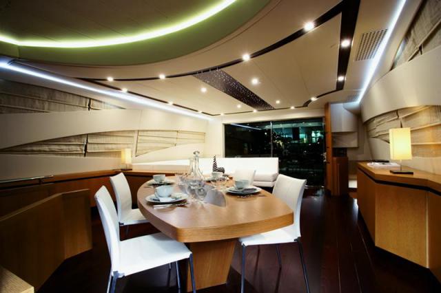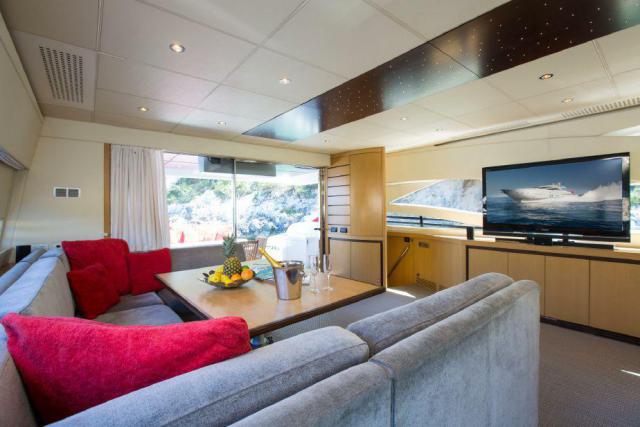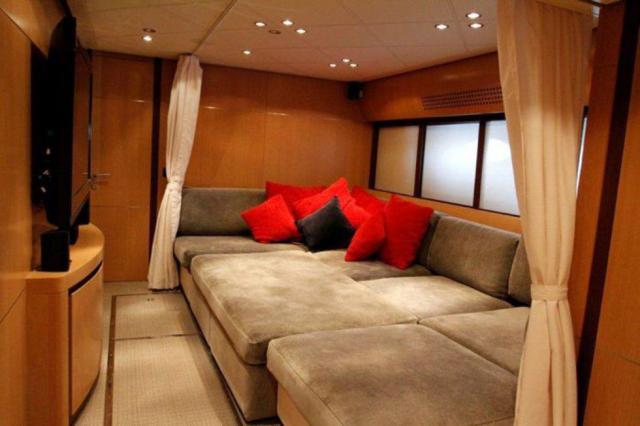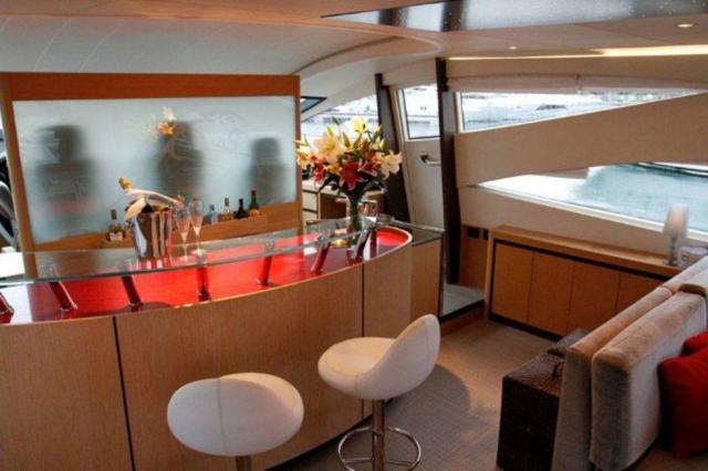 Моторная яхта PERSHING 90 имеет удобный современный интерьер, салон и столовую открытой планировки, которая может похвастаться темными деревянными полами и белой мягкой мебелью, создавая чистую минималистичную атмосферу. Яхта PERSHING 90 оборудована выдвижной жесткой крышей. Яхта PERSHING 90 способна вместить до 12 гостей в 4 каютах, включая красивую и просторную главную каюту, которая обеспечивает комфорт и стиль: гардеробная, ванная комната и современное аудио-видео оборудование. VIP-каюта расположена впереди и имеет собственную ванную комнату. Есть две двойные каюты с отдельными кроватями, расположенными в середине корабля, с дополнительным спальным местом.