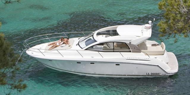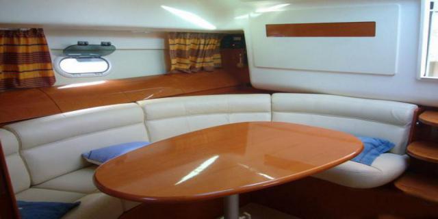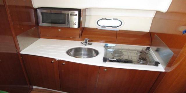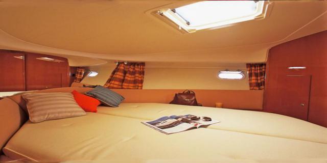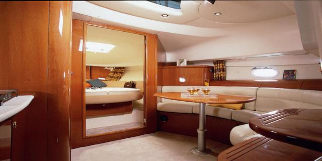 Снаружи Prestige 34 в центральной части, большой обеденный уголок с полукруглым диваном. В носовой части яхты, удобное место для отдыха и загара. Престиж 34 имеет две двухместные каюты: каюта предназначена для владельца и кабины для детей или гостей.